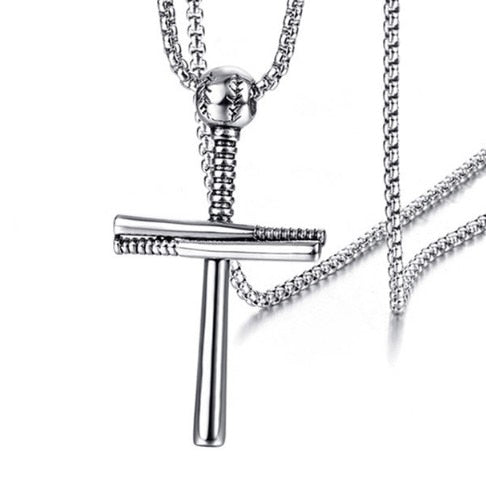 Baseball Cross Pendant Necklace Stainless (Gold Silver Black)
